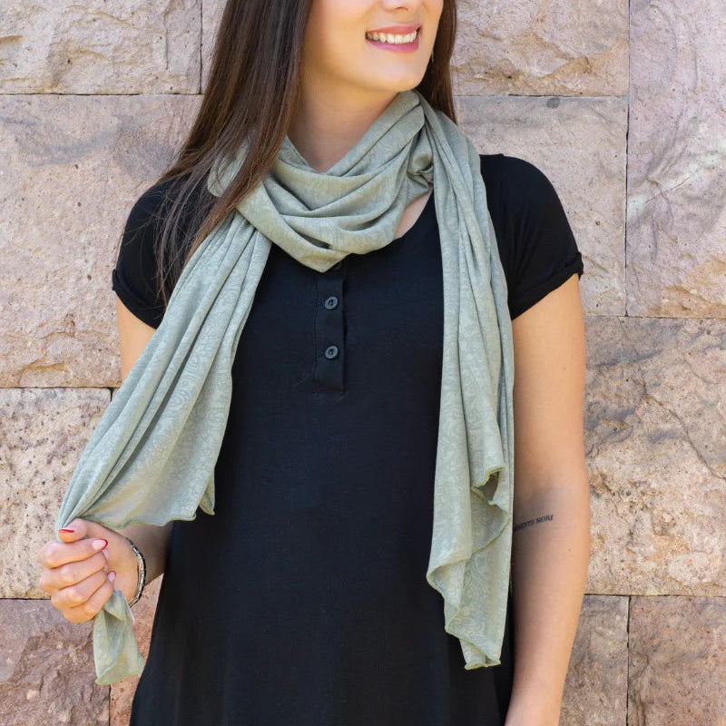Este pañuelo tiene múltiples usos, ya que son 2 prendas en uno. De telas delgadas y suaves, estos pañuelos son lo máximo para amamantar donde estés sin que nadie lo note, se abren como ponchito para cubrirte y luego se cruzan en el cuello para llevar como accesorio con cualquier tenida. Confeccionado con 50% Algodón y 50% Polyester. Se recomienda lavar a mano con agua fría.