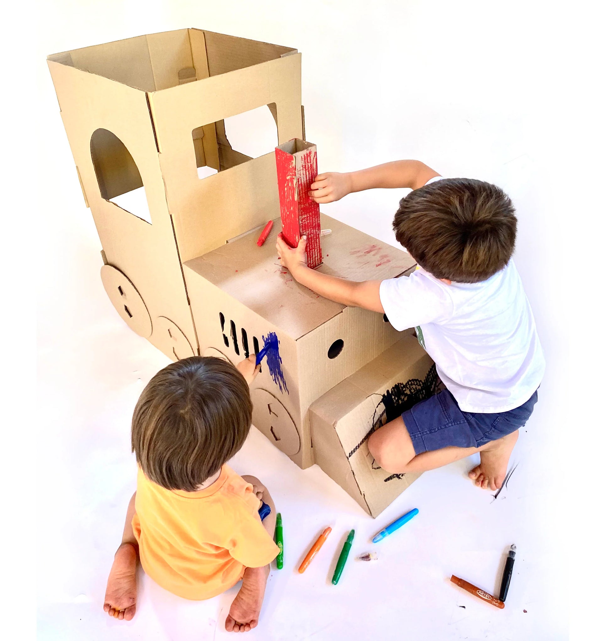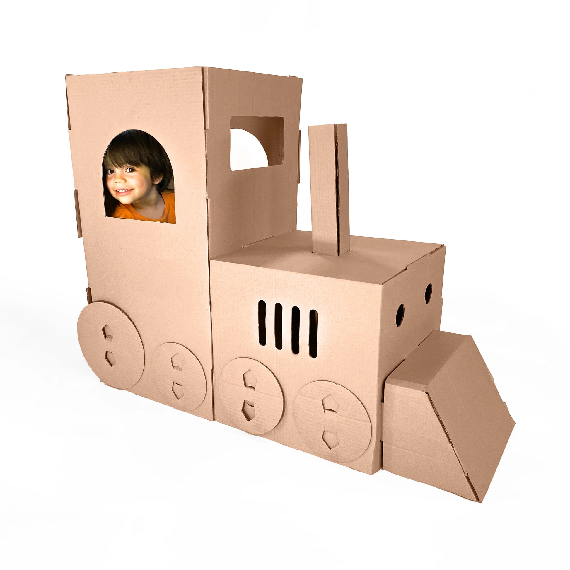 La Locomotora viene en en una caja con todas sus piezas lista para ser armado. Está elaborado con cartón corrugado café de 3mm de espesor, resistente y perfecto para ser pintado con lápices o témperas y personalizarlo como tú quieras, desarrolla también tu creatividad y expresión artística.