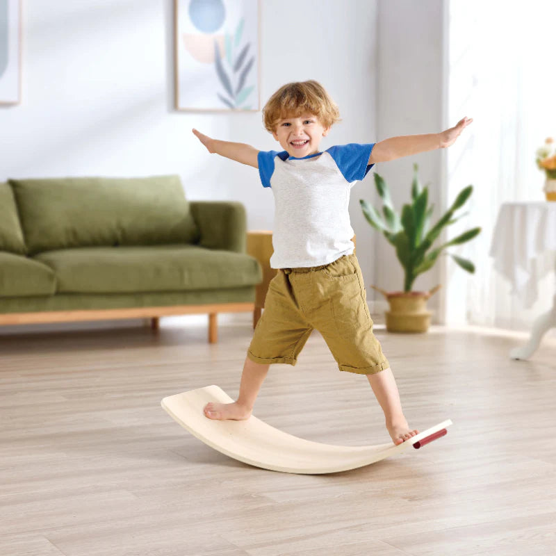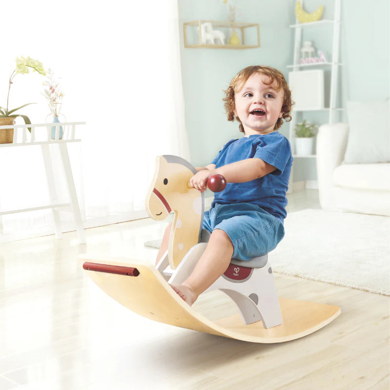 Con un asiento cómodo, manijas fáciles de agarrar y un hermoso diseño, la base curva del caballo se puede usar como una tabla de equilibrio cuando se quita el caballo.