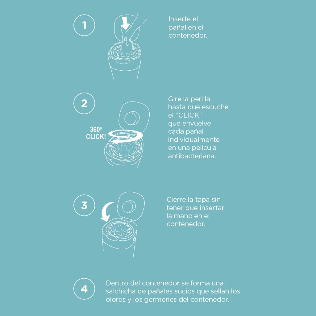 Garantiza la protección contra los olores: Envuelve los pañales individualmente para que los malos olores no escapen: 100 veces más eficaz que las bolsas de basura para pañales tradicionales.