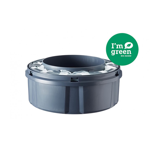 El Repuesto Sangenic con tamaño XL de Film de 17,5 m. de largo. Para 155 usos aproximadamente. Los repuestos están hechos con un 98 % de plástico reciclado y reciclable, mientras que la película antibacteriana multicapa GREENFILM ahora es biológica y está hecha de caña de azúcar de origen sostenible.