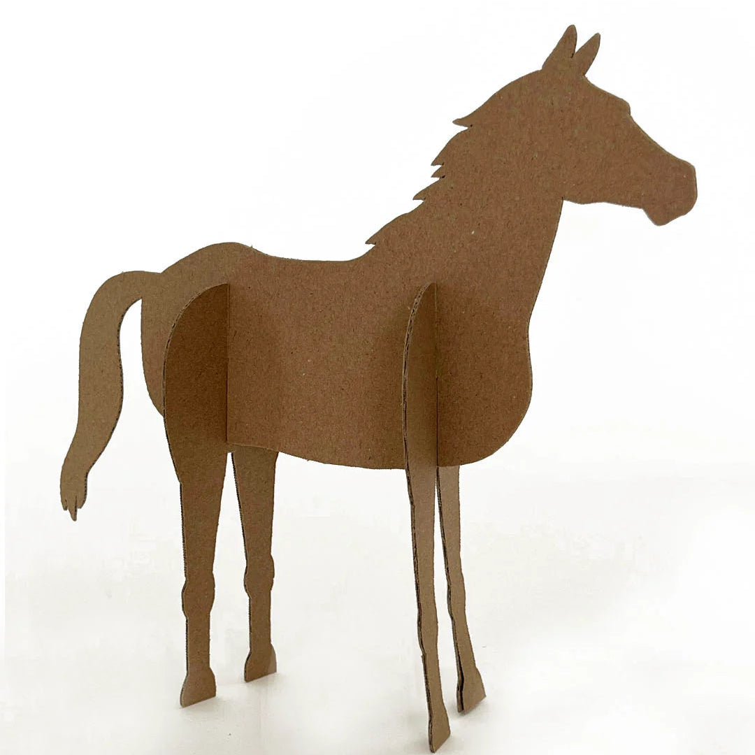 Está elaborado con cartón microcorrugado café de 2 mm de espesor. Su cartón es resistente y es perfecto para ser pintado con lápices o témperas.