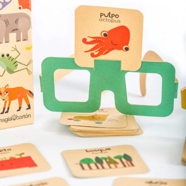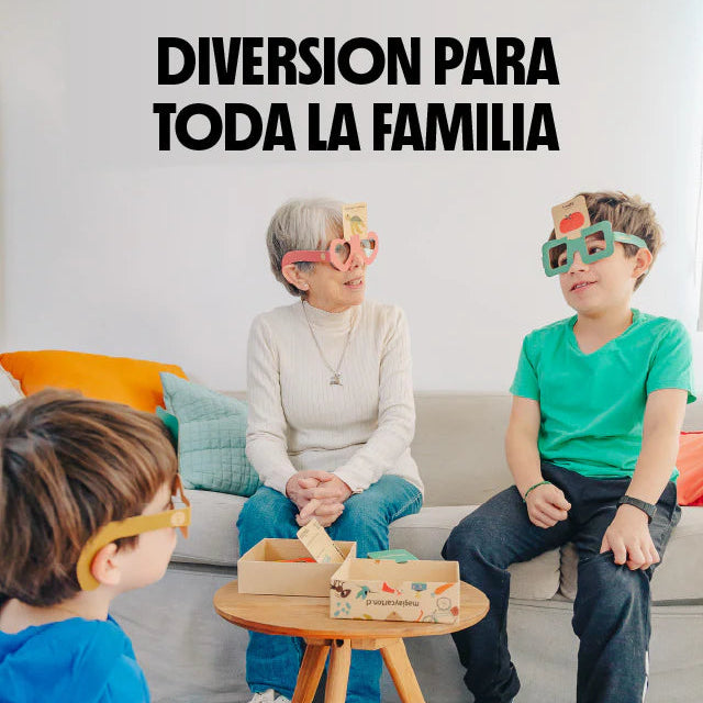 Cada juego incluye: 70 tarjetas, 4 anteojos grandes y 4 anteojos pequeños.
