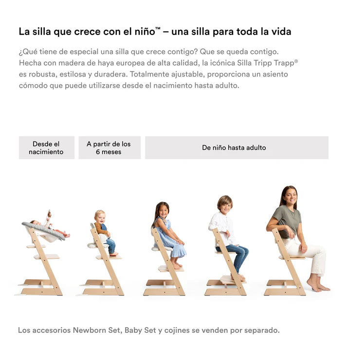 Asimismo, la silla Tripp Trapp permite que tu bebé comparta las comidas y se sienta más cerca de la familia. Los accesorios como el Baby Set y el cojín proporcionan una mayor comodidad para tu pequeño. Además, la silla de comer para bebés cuente con posiciones ajustables tanto en el asiento como en el reposapiés.
