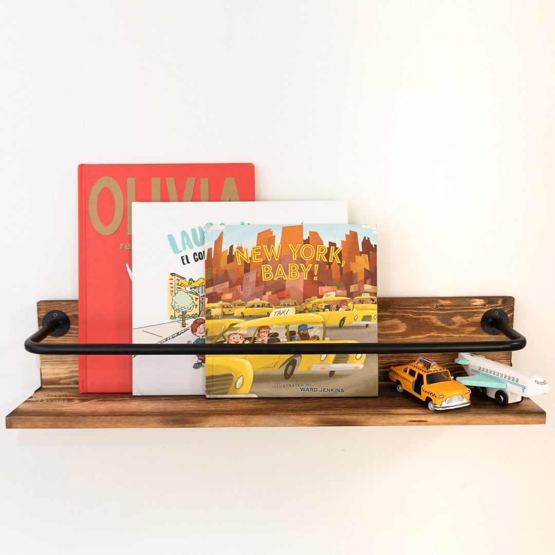 Repisa de madera y fierro estilo industrial.