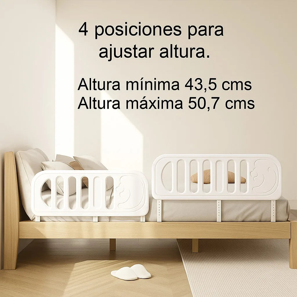 Esta baranda de cama de 120 cms ofrece una protección firme y confiable para el descanso de tu bebé, acompañando cada etapa de manera segura y cómoda. Su diseño estable, redondeado y en tonos suaves se integra fácilmente a cualquier dormitorio, brindando tranquilidad a mamá, papá y cuidadores.