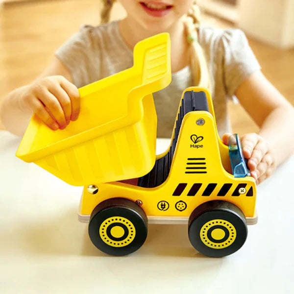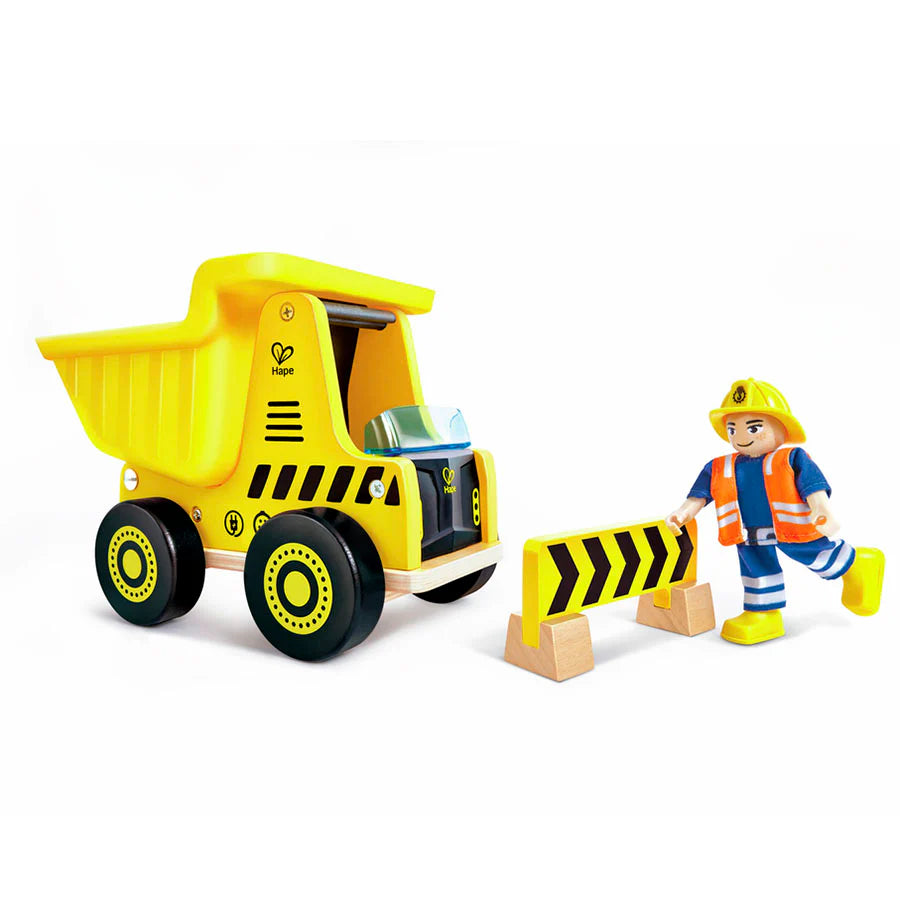 juguete ideal para pequeños constructores que desean sumergirse en el mundo de la construcción. Con un diseño robusto y funcional, permite a los niños cargar, transportar y descargar materiales gracias a su tolva basculante. Además, este set incluye una figura de trabajador con brazos y piernas articuladas y una barrera de seguridad, promoviendo el juego de roles y la enseñanza sobre seguridad en las obras. Diseñado con materiales sostenibles y acabados seguros, este camión es perfecto para estimular la imaginación y el desarrollo de habilidades motoras en los niños.