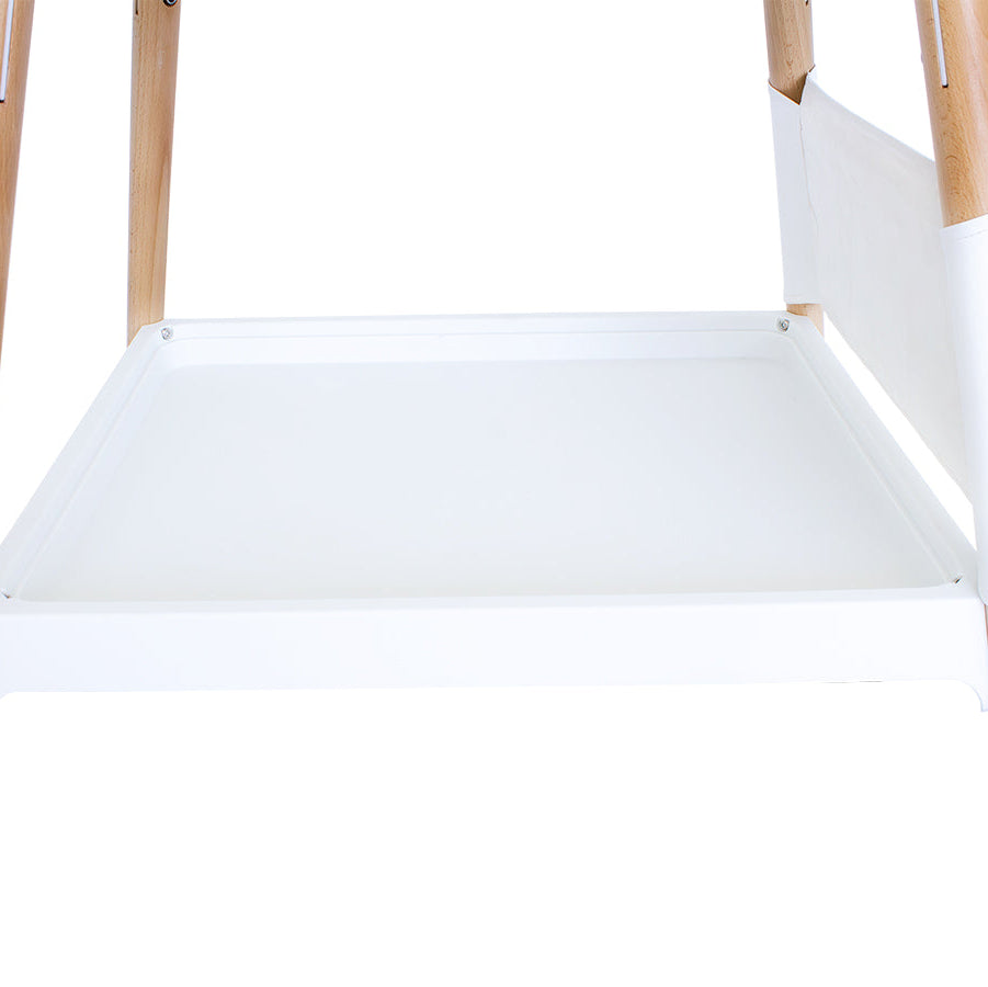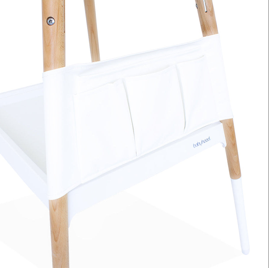 Para mayor comodidad, el cambiador Scandi incluye un estante de almacenamiento y un organizador de bolsillo, para que tengas todos tus artículos esenciales a mano. Ya sean pañales, toallitas o lociones, todo lo que necesitas para el cambio está perfectamente organizado y listo para usar.