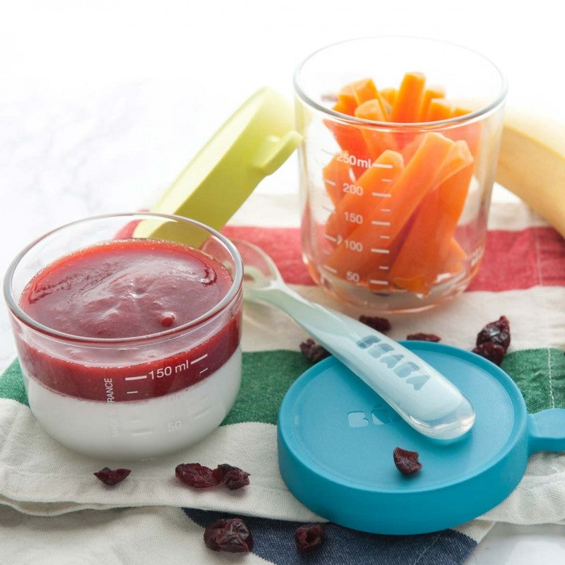 Envases de cristal extra resistentes, no se altera con el tiempo (no se decolora, no se deforma) y resiste el calor y los choques térmicos (calentamiento, congelación, esterilización). Tapa flexible fácil de sujetar: Cierre hermético para preservar los sabores y aromas.