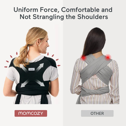 - 【Perfecta para el verano】Fabricada con tejido suave, elástico, transpirable y que absorbe la humedad, la urdimbre para portabebés Momcozy ofrece una sujeción resistente y segura. Su bebé se sentirá como si estuvieran recibiendo un abrazo cómodo mientras se mantiene fresco y comfortable.Provide último cuidado para su pequeño.