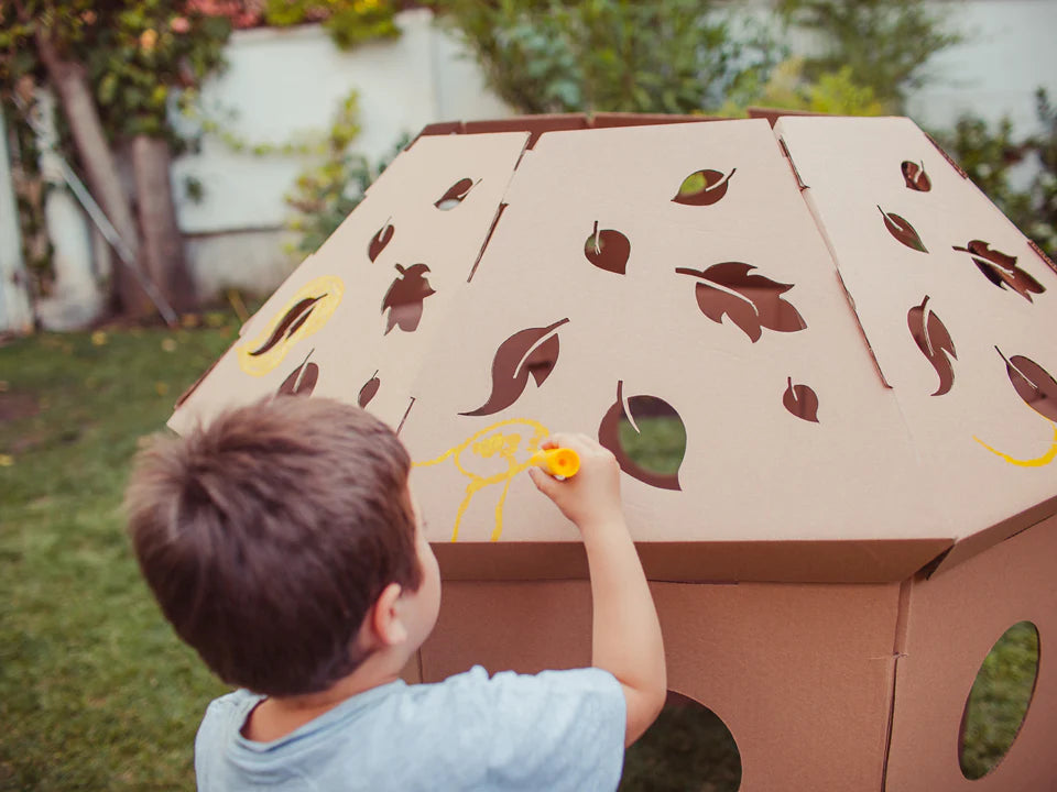 Nuestra cabaña les regala momentos de fantasía a los niños. Les permite tener su propio espacio o "casa club" para jugar, favoreciendo el juego grupal, la imaginación y el lenguaje verbal. Lo mejor: pueden pintarla y personalizarla con stickers, témperas, lápices o lo que ellos quieran, desarrollando también su creatividad y expresión artística.