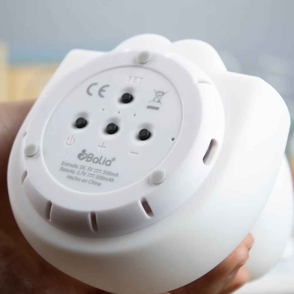 Diseñada para acompañar el descanso de tu bebé, esta lámpara combina una luz nocturna suave con sonidos relajantes que ayudan a crear un ambiente tranquilo para dormir.