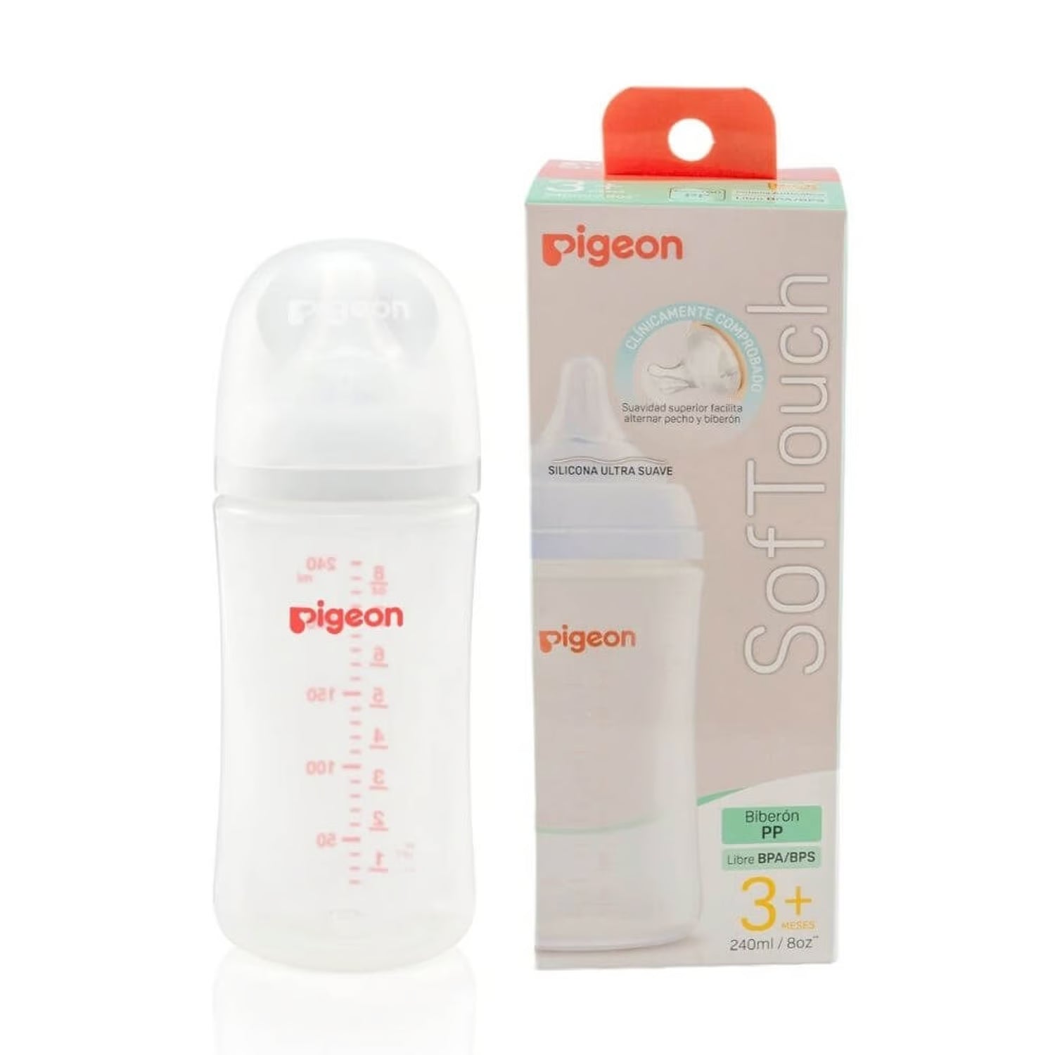 Mamadera Pigeon SofTouch vienen con una línea basada en investigaciones para un agarre apropiado y una tetina aún más suave que está más cerca del pecho de la madre.