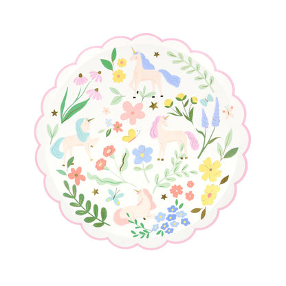 Estos platos de papel, con un elegante borde redondeado, le darán un toque mágico a tu fiesta de unicornios o princesas. Ideales para combinar con vajilla y decoraciones en tonos pastel.