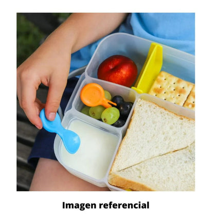 Permite que tus hijos puedan comer alimentos húmedos y secos de forma muy segura e higiénica. Los mangos de las mini cucharitas son grandes y ergonómicos, por lo que facilitan la sujeción por parte de tu hijo o hija, mientras que su tamaño compacto se ajusta a la mayoría de loncheras y box para snack.